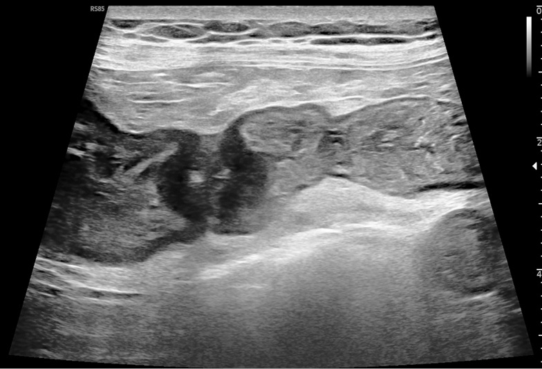 Рис. 1. Ультразвуковая картина: образование тонкой кишки, стенозирующее ее просвет
