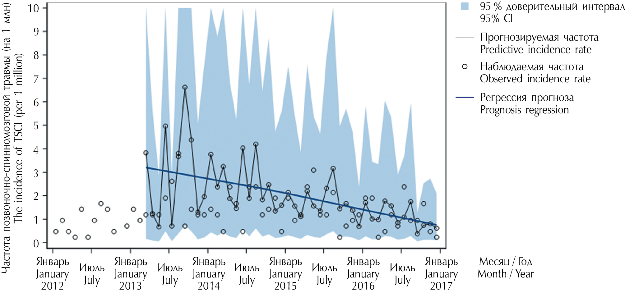 По данным последнего наиболее полного систематического анализа, частота ПСМТ в Санкт-Петербурге возросла с 64 случаев на миллион населения в 2009 г. до 154 случаев в 2014 г. [7]. Однако данное исследование включает в себя все случаи травматического повреждения позвоночника, в том числе без повреждения спинного мозга и наличия неврологического дефицита, что приводит к некоторым трудностям при сравнении с данными мировой литературы, где подобные исследования включают только осложненную повреждением спинного мозга травму позвоночника.