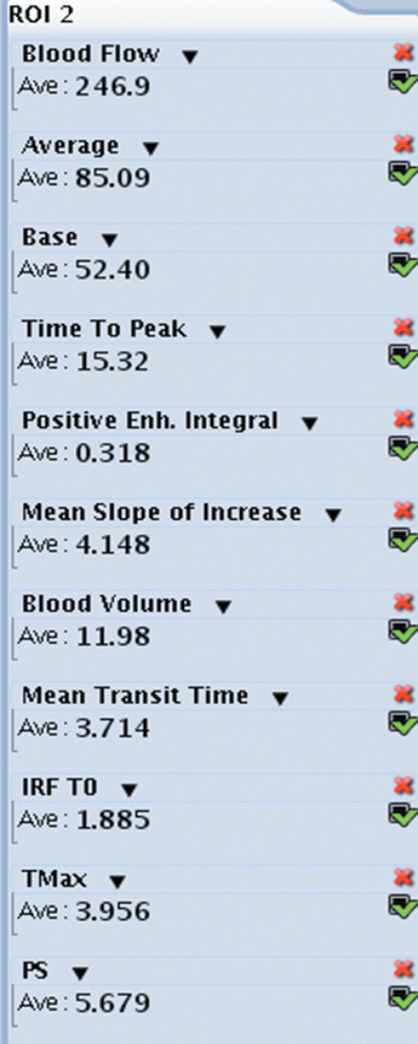 Fig. 3. Summary table of perfusion parameters in ROI 2 in Fig. 1