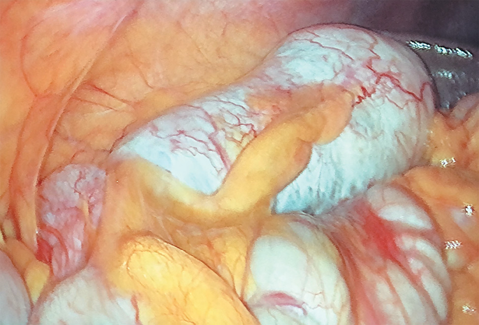Рис. 2. Интраоперационная картина мукоцеле червеобразного отростка