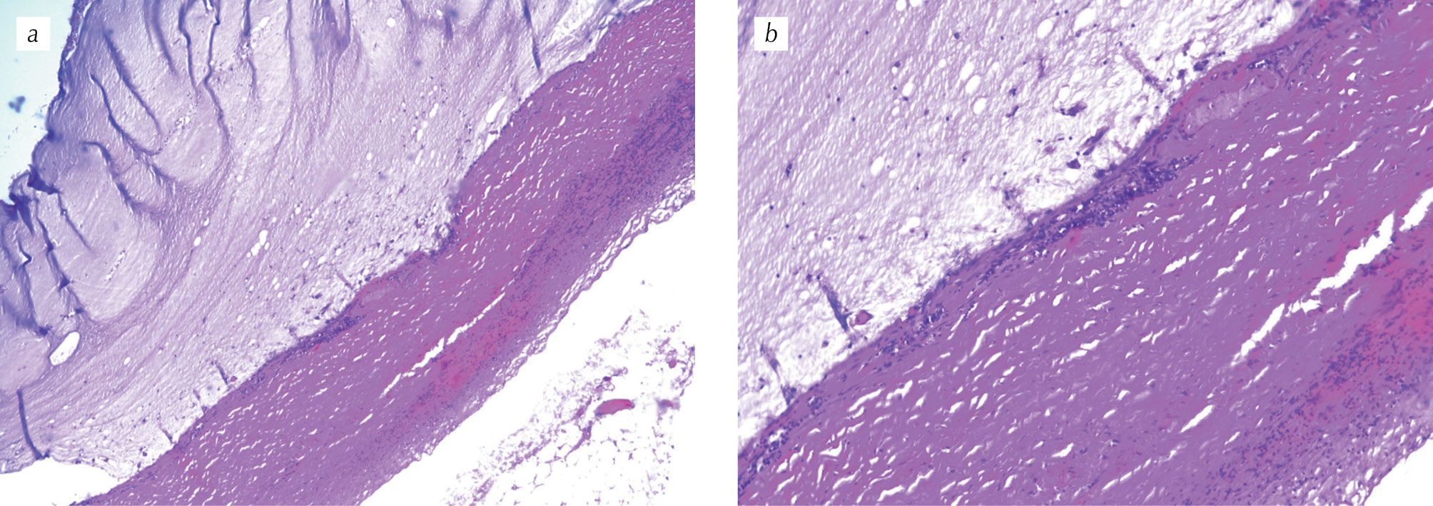 The etiology and pathogenesis of microglobulin have not been studied. Microglobulin is characterized by the organization of mucin in semi-transparent grains or albescent pearl beads, called mucinous globules. The diameter of globules is 1–10 mm, and their surface calcification is often identified. Several authors have described the macroscopic type of globule as “frog eggs” [1, 9].