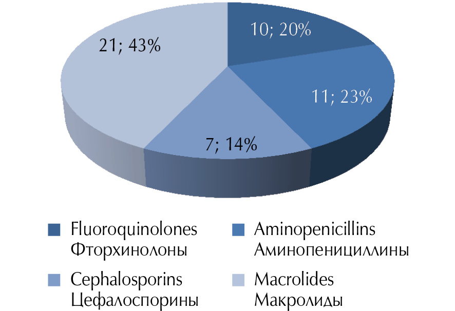 Рис. 1. Антибактериальные препараты, назначенные на догоспитальном этапе