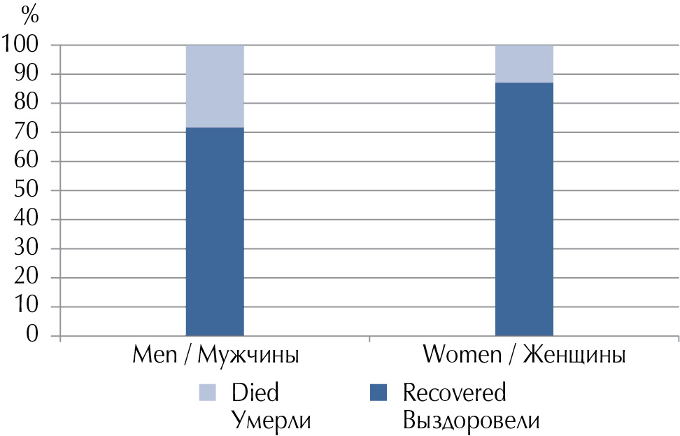 The outcomes of the disease (recovery, death), depending on age, sex, characteristics, presence of concomitant diseases, and clinical and laboratory indicators, were analyzed.