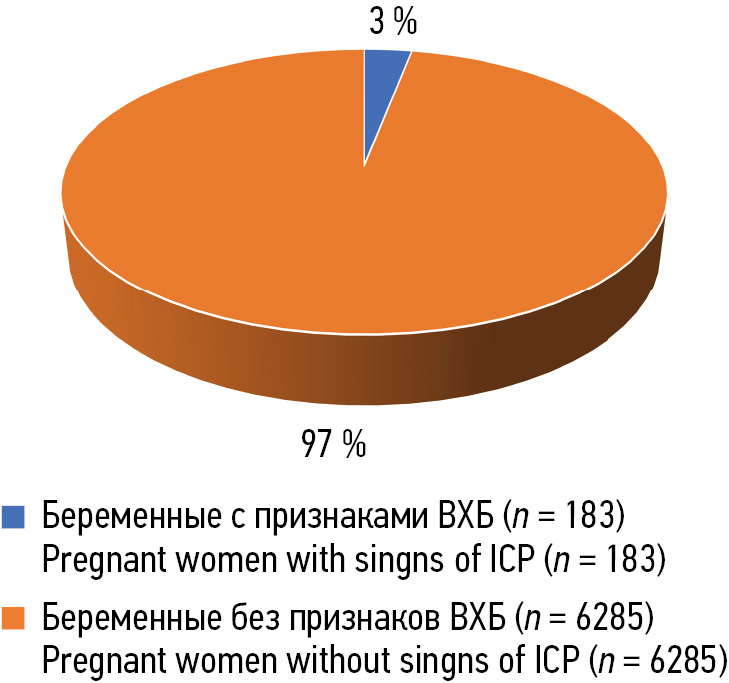 Рис. 1. Доля пациенток с признаками, позволяющими заподозрить наличие внутрипеченочного холестаза беременных (ВХБ), среди женщин, включенных в анализ