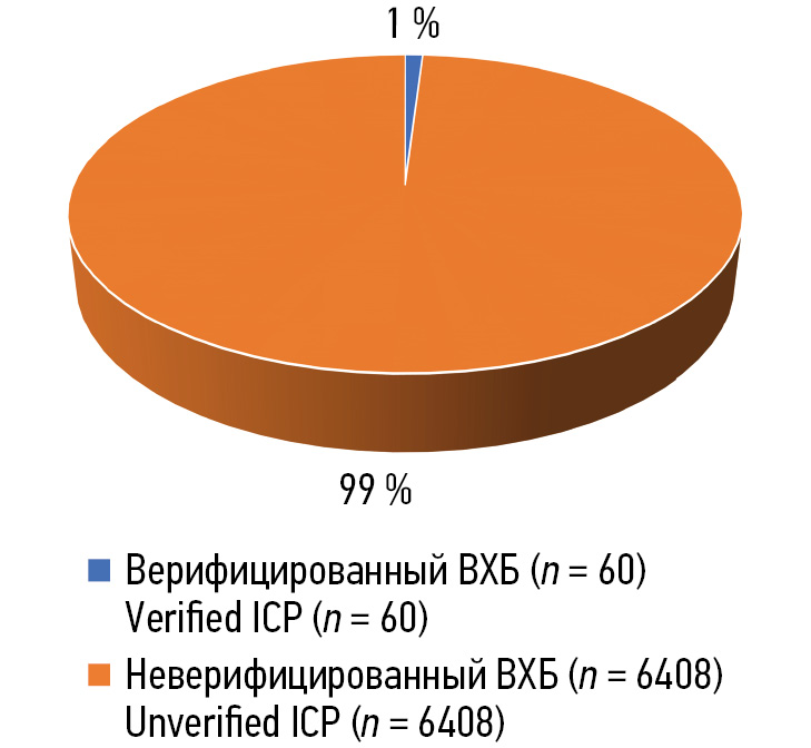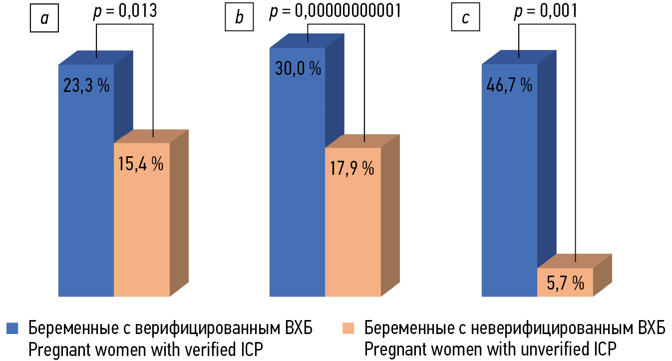 Рис. 3. Доля верифицированного внутрипеченочного холестаза беременных (ВХБ) среди пациенток с подозрением на наличие этого заболевания