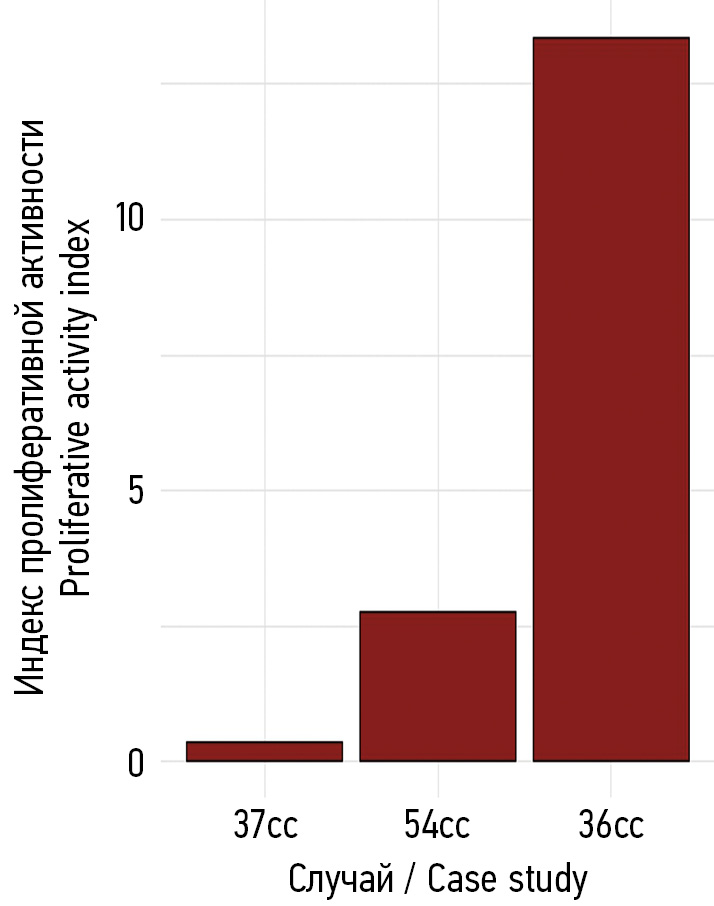 Рис. 6. Столбчатая диаграмма, отражающая индекс пролиферативной активности в синовиальных оболочках