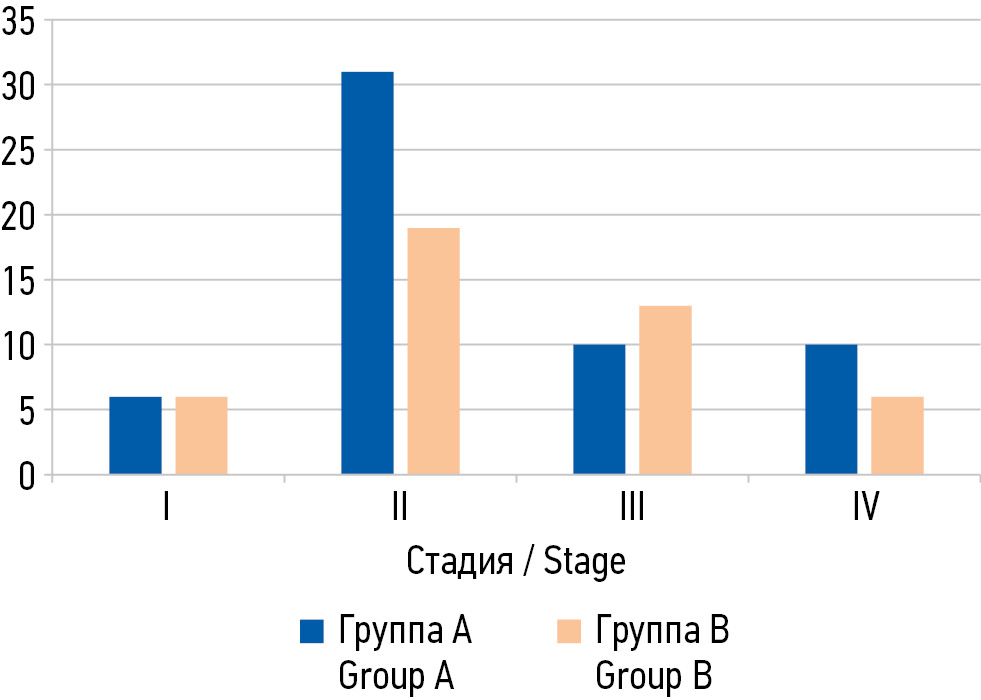 Рис. 1. Распределение пациентов по стадиям заболевания
