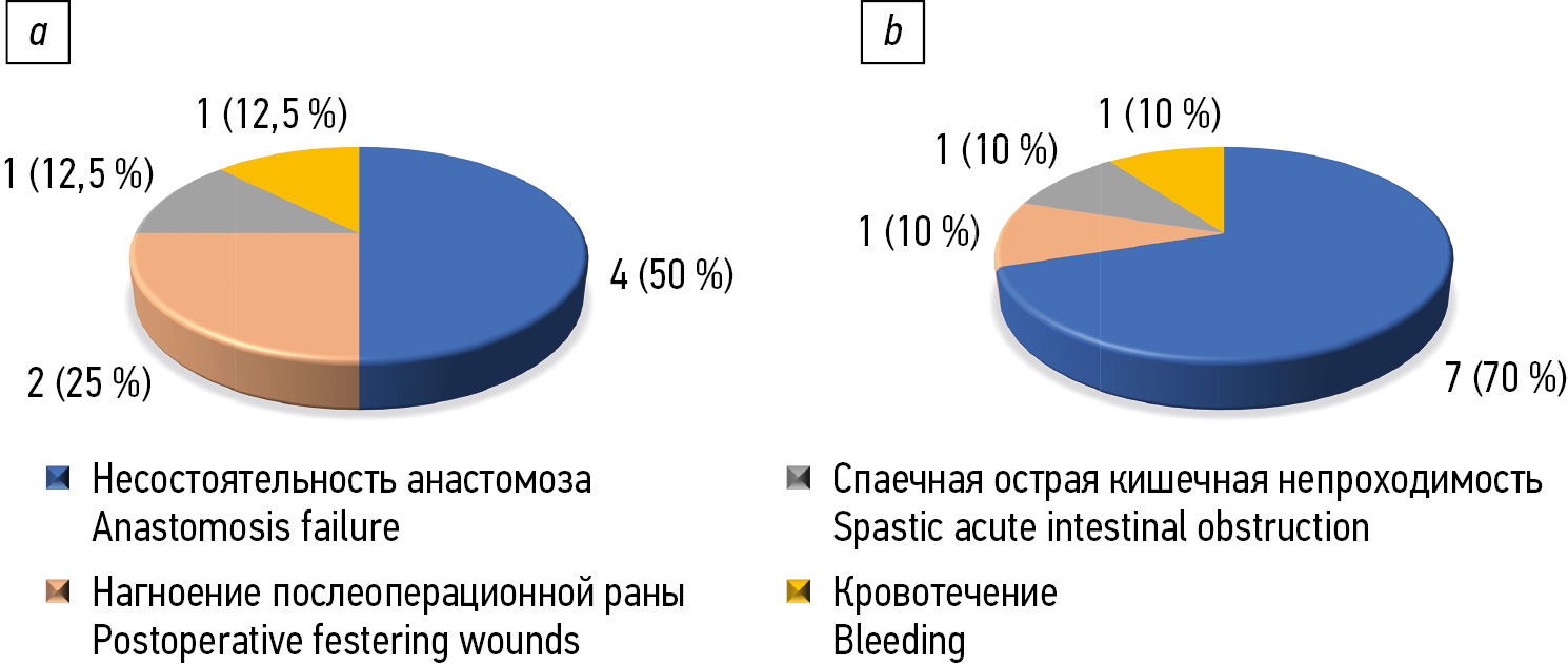 Рис. 2. Структура осложнений в группе А (a) и группе В (b)