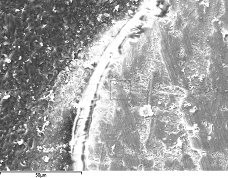 Morphological criteria: Enamel openings are not more than 2 μm. The depth of penetration of enamel bridges into dentin is up to 5–10 μm. In each enamel bridge, there are up to 5–6 enamel tunnels with increased density and smaller diameter. On the slice, there are no changes along the entire length of the enamel surface, and the whole pattern is homogeneous.