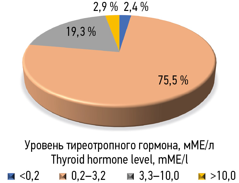 Рисунок. Доли обследуемых с разными уровнями тиреотропного гормона