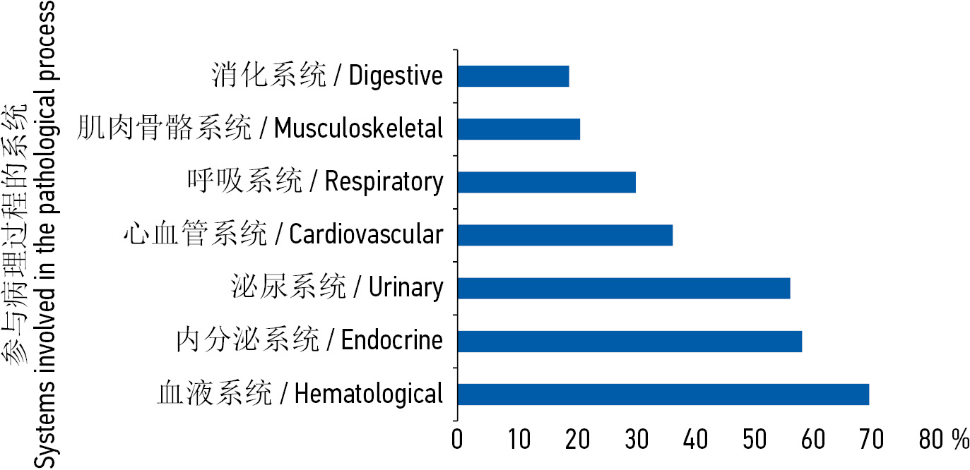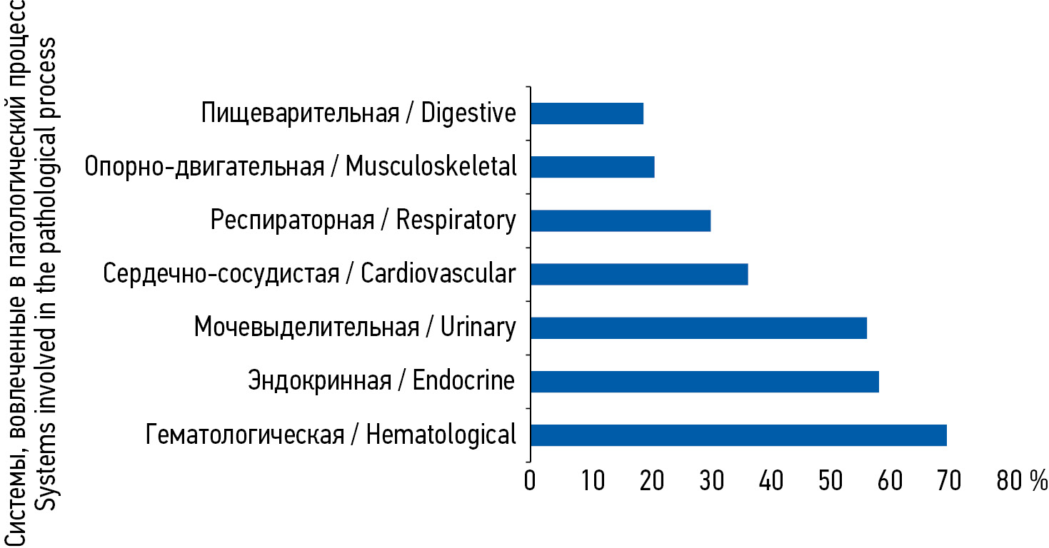 Fig. 1. Structure and frequency of involved systems in postpartum women with endometritis after caesarean section according to the cumulative disease rating scale / Рис. 1. Вовлечение различных систем органов в патологический процесс в соответствии с кумулятивной шкалой рейтинга заболеваний