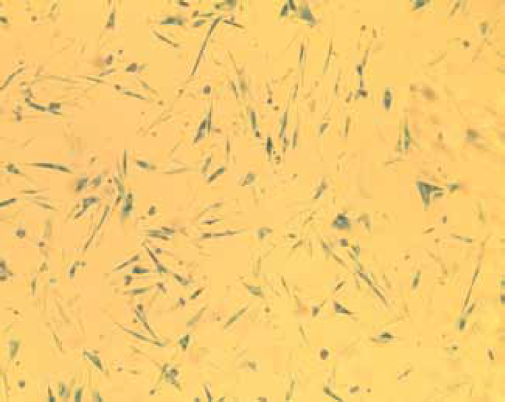 Мезенхимные стромальные клетки (МСК) представляют собой высокопролиферативные мультипотентные клетки. В соответствии с минимальными критериями Международного общества клеточной терапии МСК человека — это клетки с фибробластоподобной морфологией, обладающие способностью к адгезии к культуральному пластику, дифференцировочным потенциалом и следующим иммунофенотипом: CD105+, CD73+ и CD90+, CD45–, CD34–, CD14–, CD11b–, CD79–, CD19- и HLA-DR [1]. В настоящее время МСК считаются одним из наиболее перспективных ресурсов для регенеративной терапии из-за простоты выделения, высокой пролиферативной активности и широкого спектра продуцируемых ими биологически активных веществ (цитокины, факторы роста и др.).