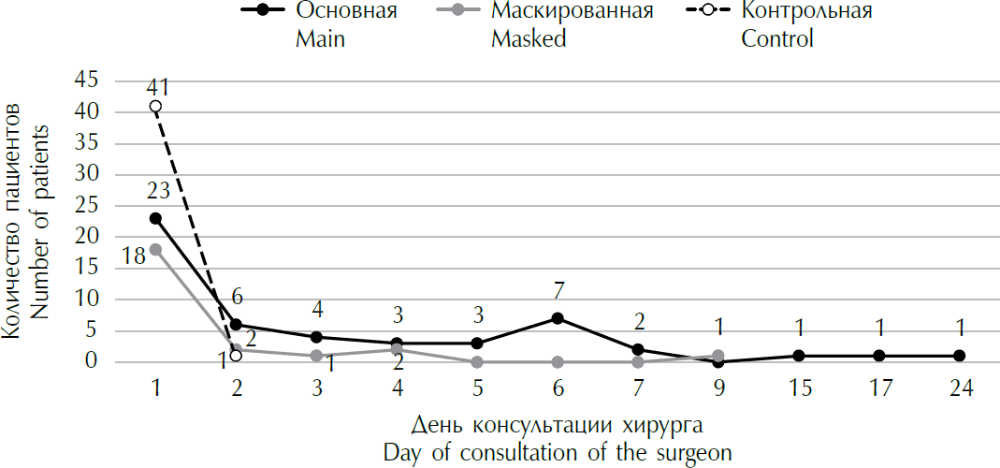 Рис. 1. Сроки консультации пациентов исследуемых групп хирургом