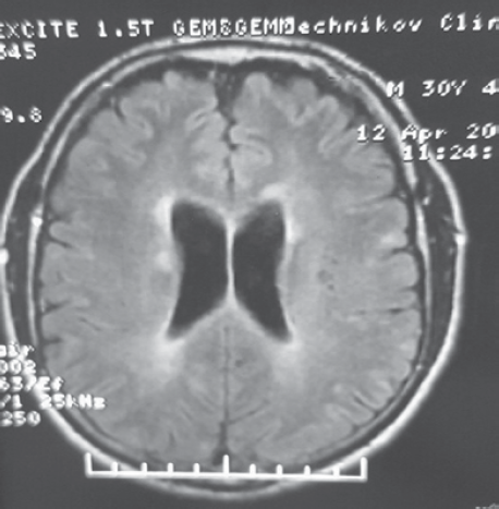 3. Fig. 2. MRI T1 VI of the patient Z. Periventricular demyelination with the symptom of “Dawson’s fingers”, characteristic of multiple sclerosis