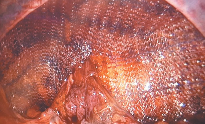 Fig. 3. Right inguinal fossa. Installed mesh Explant
