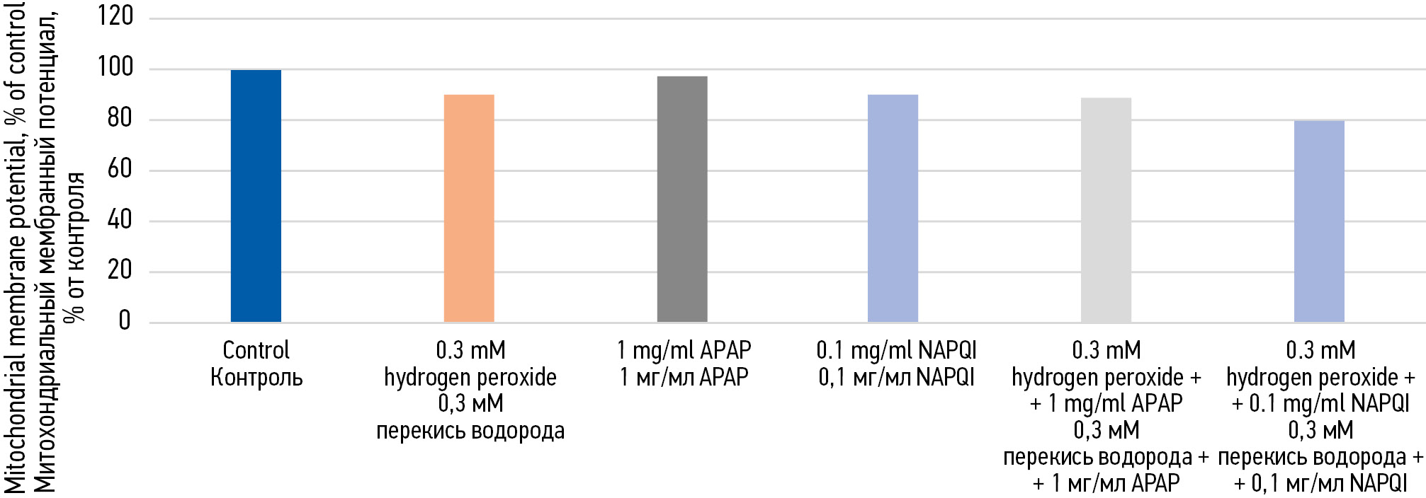 This preincubation also reduced the MMP to 90.0%, 90.7%, and 90.5%, respectively (Fig. 3). Coincubation with H2O2 and paracetamol or NAPQI revealed an even greater decrease in the MMP to 88.9% and 80.6%, respectively, than in control cells.